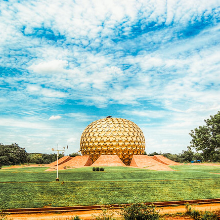 Наш ретрит начнется в городе будущего Ауровиль. Это город под эгидой ЮНЭСКО. Также называется "городом тишины".